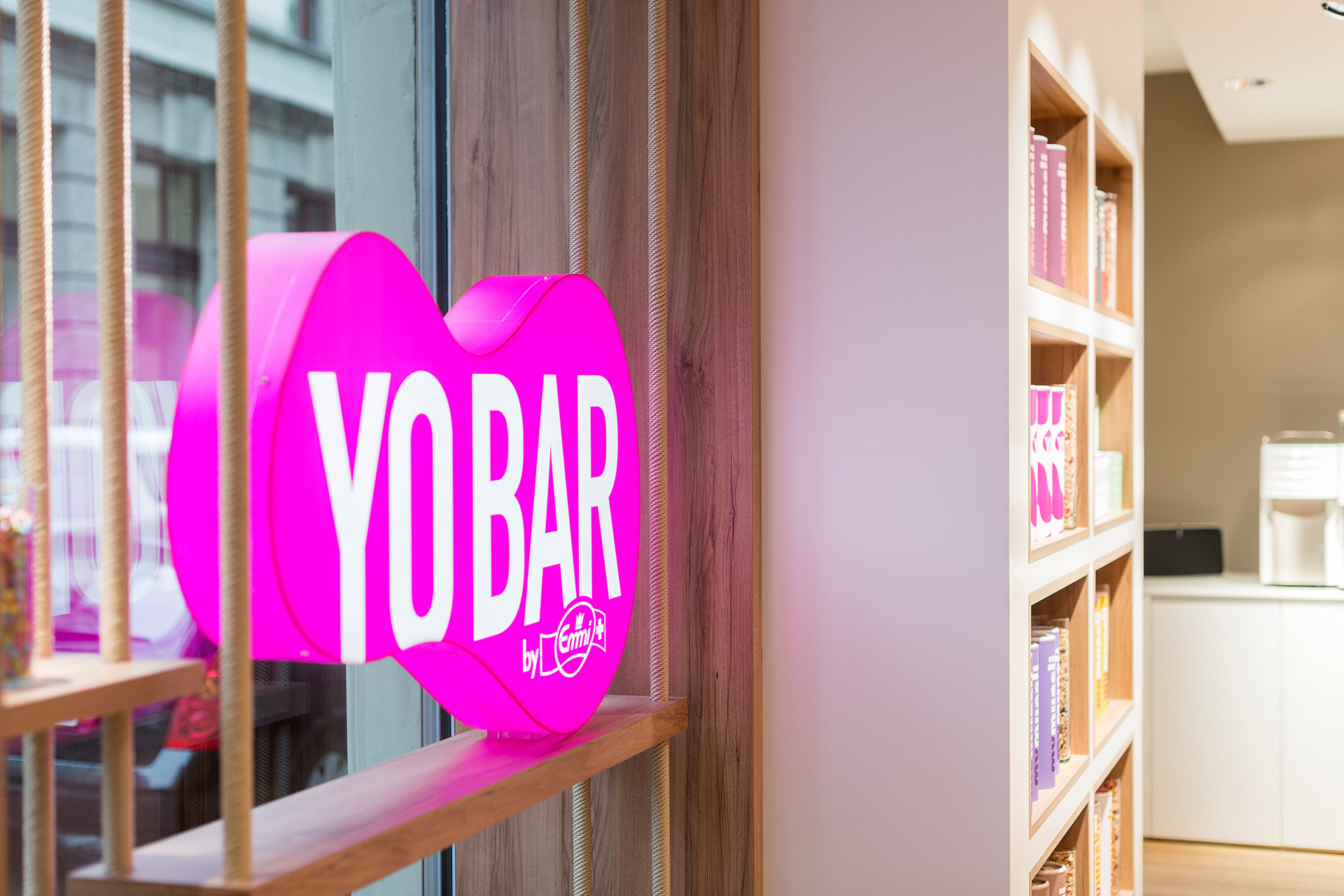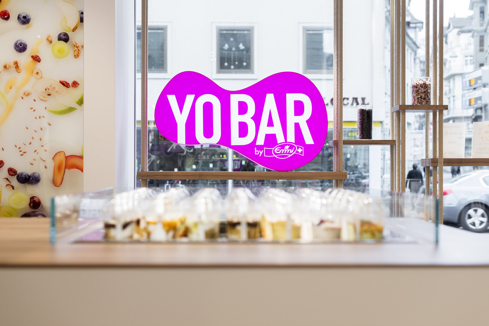 YOBAR BY EMMI Logo Entwicklung und Interior-Konzepts. Am 16. April 2016 eröffnete die erste Yobar by Emmi in Luzern.